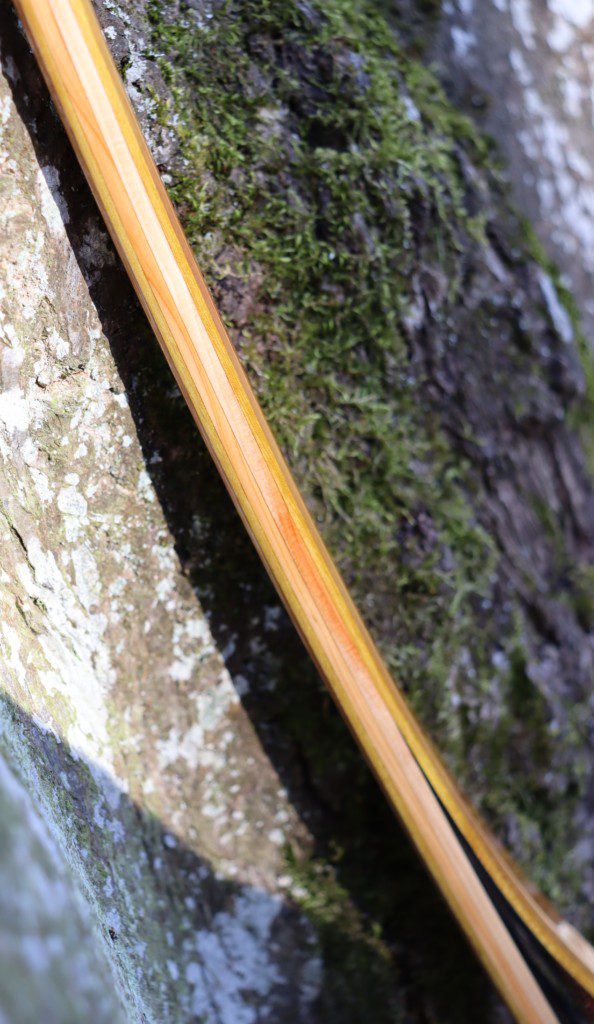 « Sapiens » Semi Longbow de 66″ composé de 3 âmes (Bambou, Bambou, If).