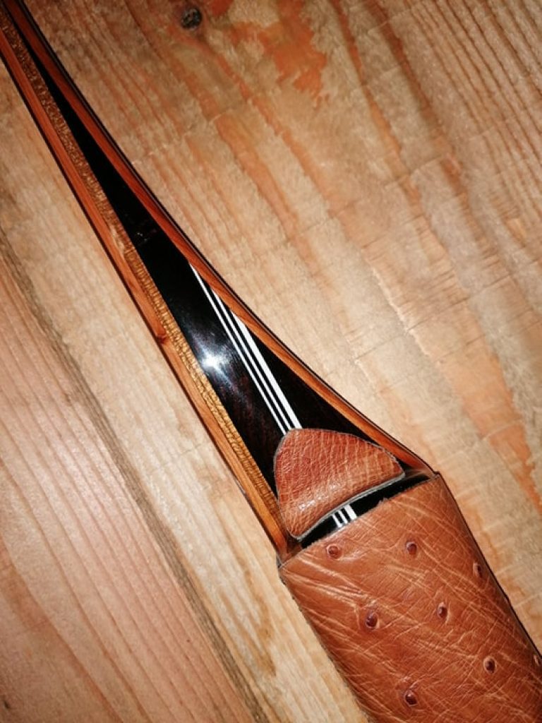 Le grip et le tapis de flèche sont en cuir d’autruche.