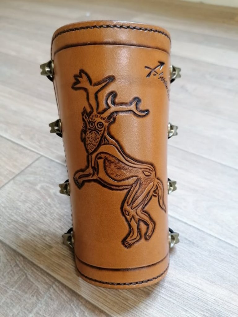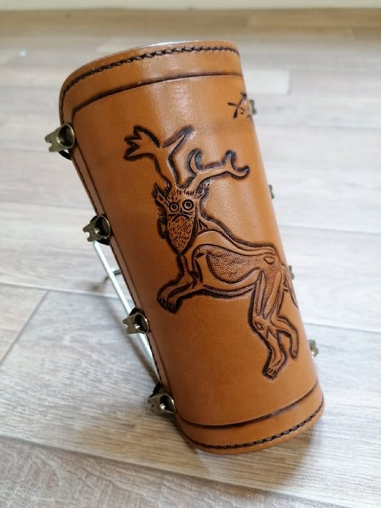 Le brassard est réalisé à partir de Collet tannage végétal de 3.5mm d’épaisseur.