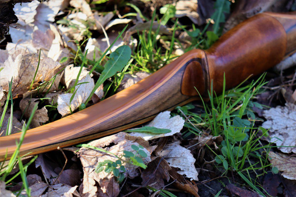 La poignée ergonomique est en Noyer du Périgord, elle est renforcée en son centre par du composite G10