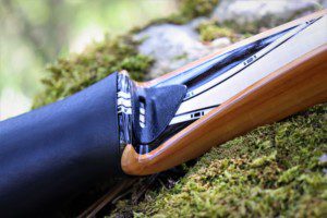 Elle est habillée par un grip en cuir Caprin teinté en noir